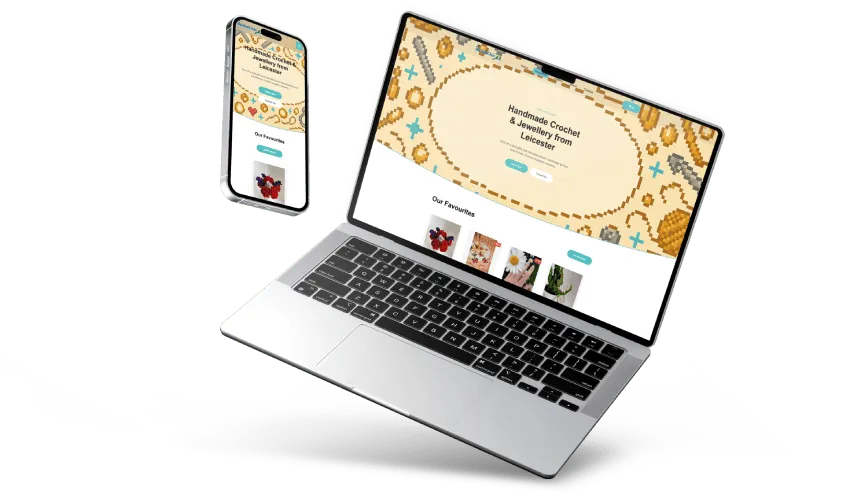 A one-page site designed for Nat & Chlo, a handmade jewellery and crochet brand. The focus was on a clean, playful aesthetic with custom graphics, smooth animations, and an Etsy shop integration to showcase their products.